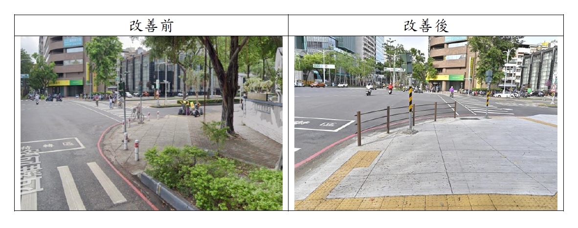 道工處表示,此次整建針對既有磚面老化、樹木竄根等潛在安全隱患進行全面翻修,步道換上平整耐用的新鋪面,並於路側新增連續植栽帶與擴大榕樹植穴,兼顧行人與樹木共存空間,落實永續綠化理念。在交通繁忙的中華四路與四維四路路口,更加設護欄,降低車流對行人的潛在衝擊風險。