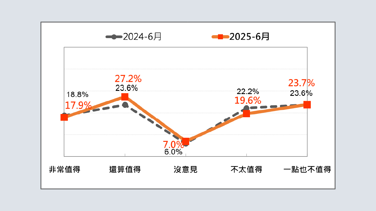 在政府補助台電1000億元的政策方面,民調顯示52.1%的民眾表示贊成,39.6%不贊成,贊成比例領先12個百分點。這項原本編列在2025年中央政府總預算案的補助,遭立法院刪除後,行政院於4月提出特別預算再次納入。