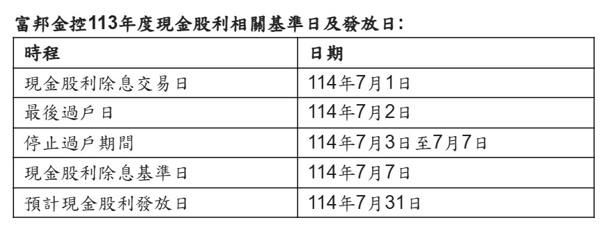 富邦金除息交易日出爐!董事會決議選在7月1日,想參與除息的投資人,最後買進日為6月30日,就能在7月31日領錢。