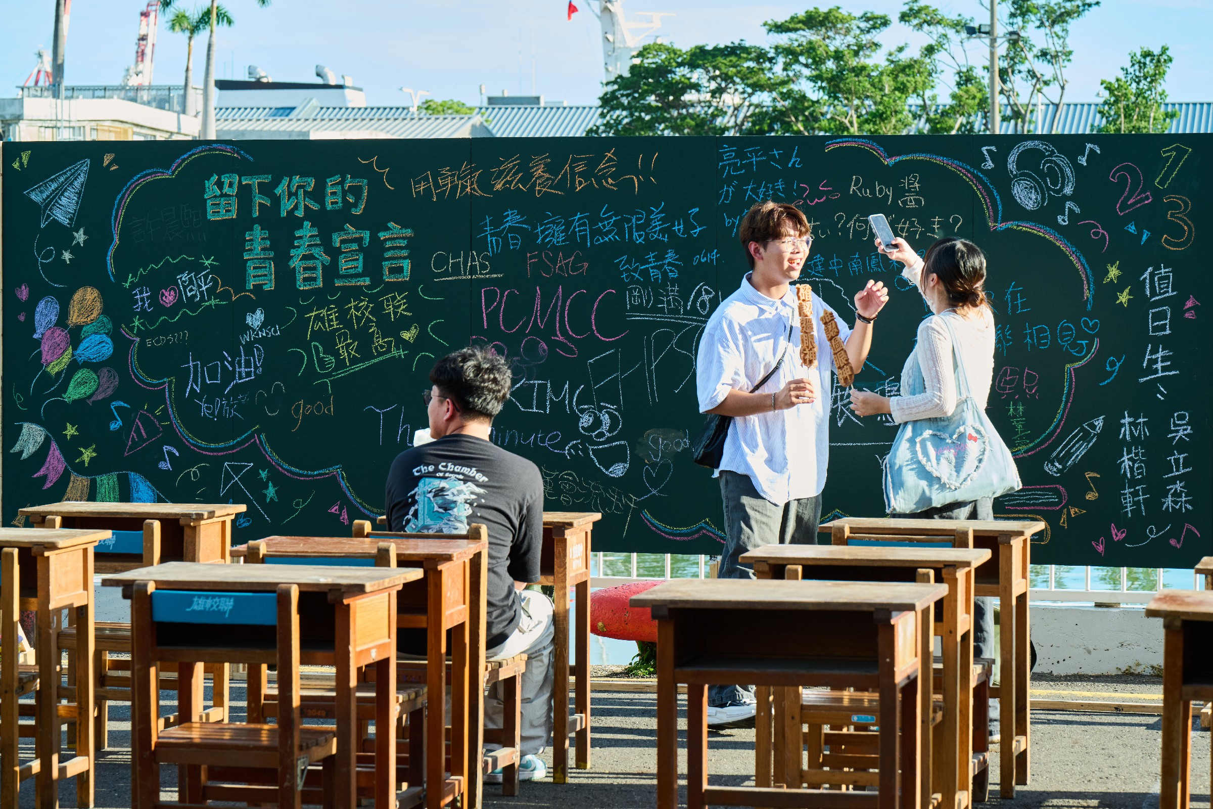 ↑圖說:參加活動的同學在黑板上寫下青春宣言,充滿逗趣與活力的詞句,讓會場變成一場教室派對。(圖片來源:高雄市青年局提供)