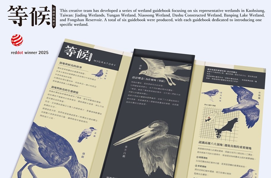 《等候:一場與候鳥相遇的靜謐對話》創作團隊包括陳玟伶、劉育芬、葉銘哲、林雅淳、盛芷柔,是一項關於高雄濕地與候鳥保育的教育設計專案,旨在喚起大眾對濕地生態與遷徙鳥類的關注與珍視。作品名稱「等候」象徵著人們在濕地中靜心觀察、耐心等待候鳥歸來的情境,也映照出人與自然之間和諧共處的深刻意涵。