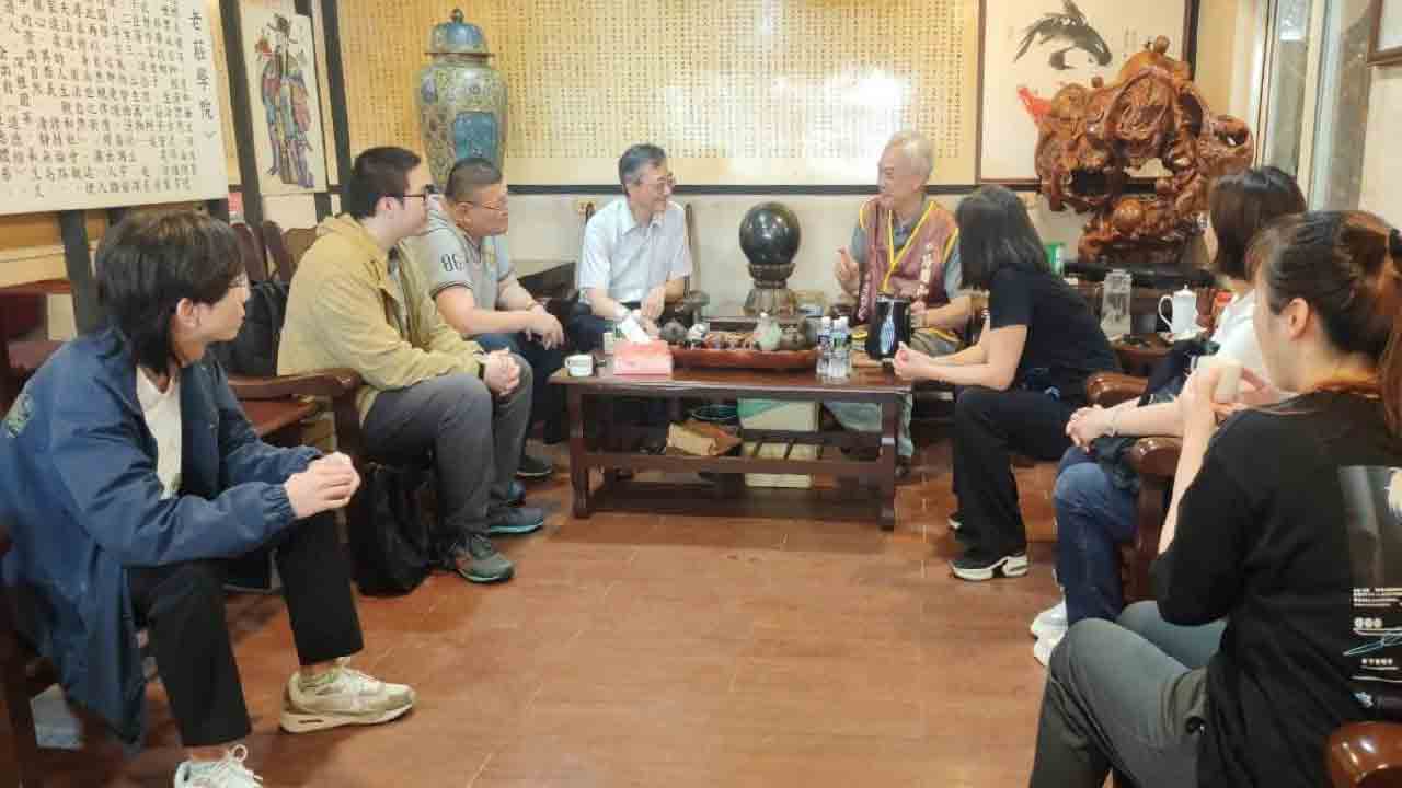 ↑圖說:文大師生與道場工作人員進行道家學術文化交流,雙方互動熱絡。(圖片來源:姜太公道場提供)
