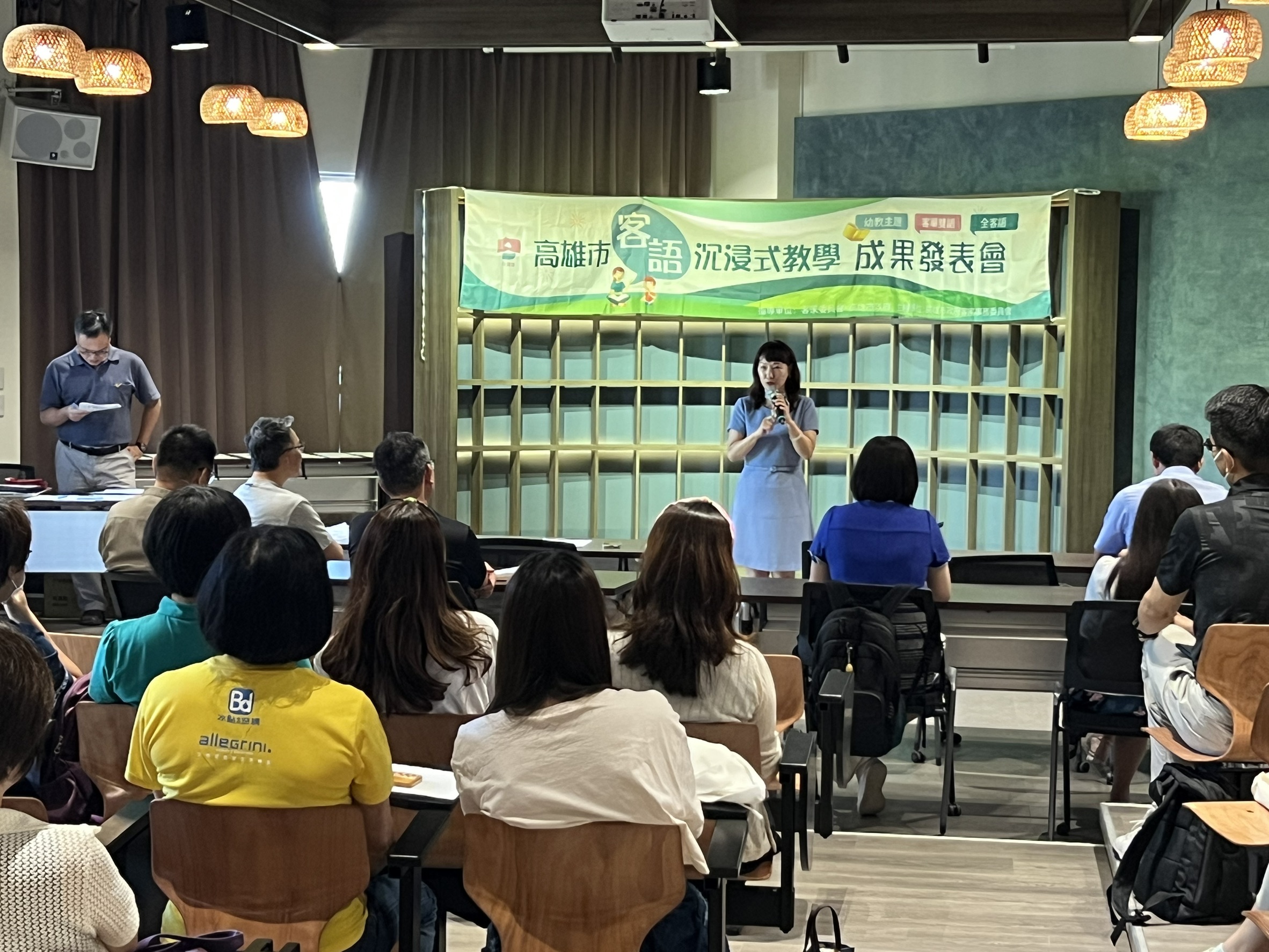 高雄市客家事務委員會於美濃國小舉辦「113學年度高雄市客語沉浸式教學成果發表會」,邀集美濃、杉林及六龜地區共15所推動客語沉浸式教學計畫之學校師長齊聚一堂,分享教學經驗與學生學習成果。客委會主委楊瑞霞親自頒發教學績優獎項與感謝狀,感念師長多年來堅持深耕客語教育,並期許更多教師投身沉浸式教學,共同打造客語復振的新篇章。