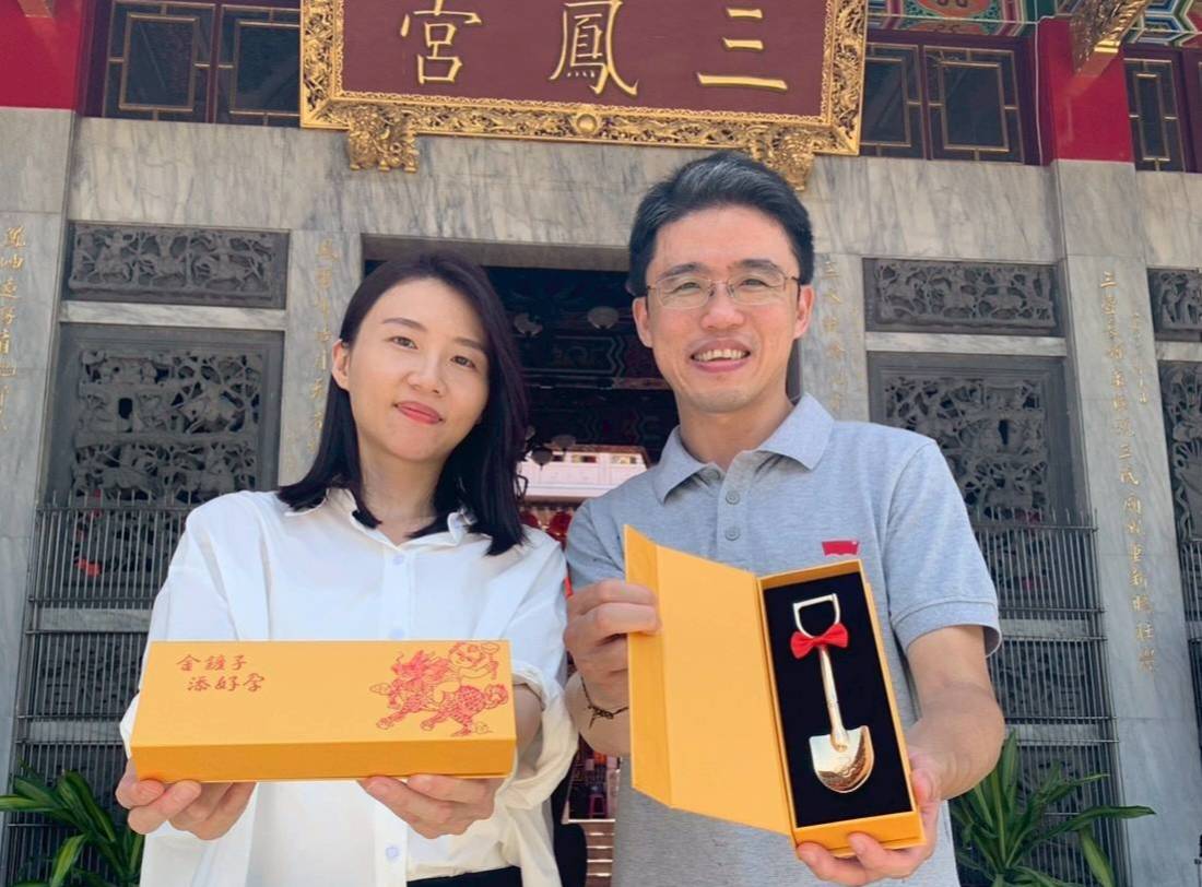 圖說:高市府選在麒麟日結合十大廟宇發送新人金鏟子禮盒。(圖片來源:高雄市民政局提供)