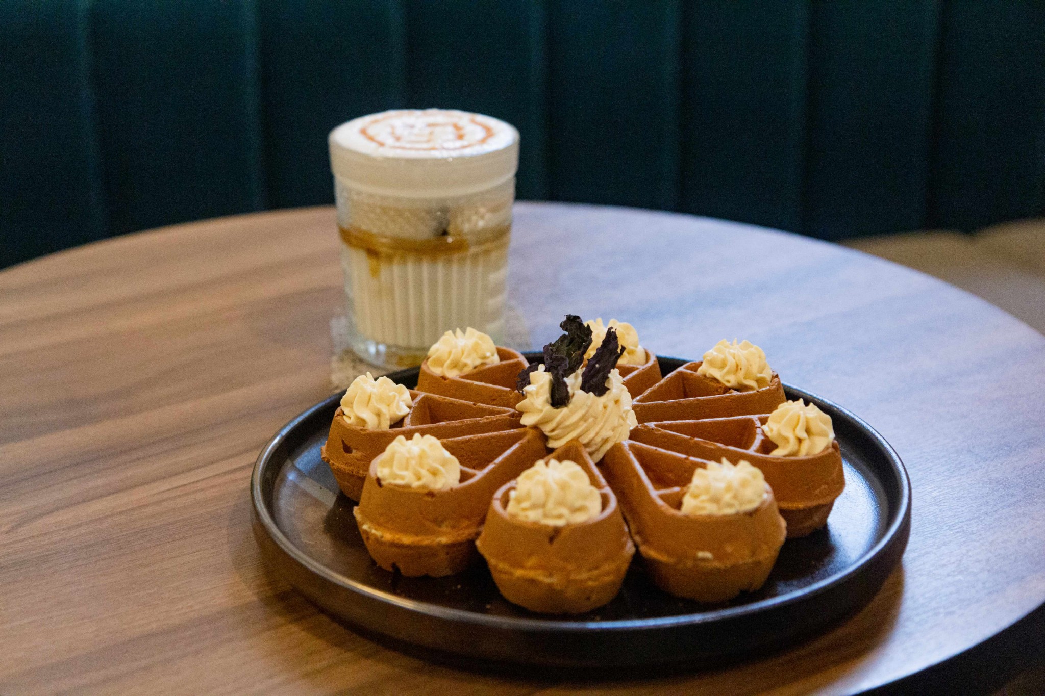 圖說:溫故知新咖啡推出展覽限定特餐「鹽分雙品」,《鹽滷潮鬆餅》與《鹽與蜜》飲品(圖片來源/南美館提供)