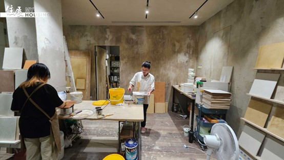 凡典在做的塗料,也與市面上流行的「藝術塗料」略有區隔。他說:「我們比較像是土,不像漆。我們做出來的表面比較厚、有手感、有毛孔,也更天然,但對師傅的手藝與材料熟悉度要求更高。」他笑說:「所以我們現在其實也像是在訓練一群新世代的塗料職人。」