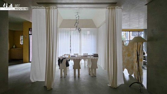 圖說:會客區採白色布幕捲簾,白色桌搭配如雲朵般的椅子,恰好演繹出林文傑的爛漫性格。圖/朱福山