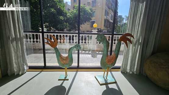 圖說:窗邊靜靜佇立的銅製公雞雕塑,為空間增添不少趣味。圖/朱福山