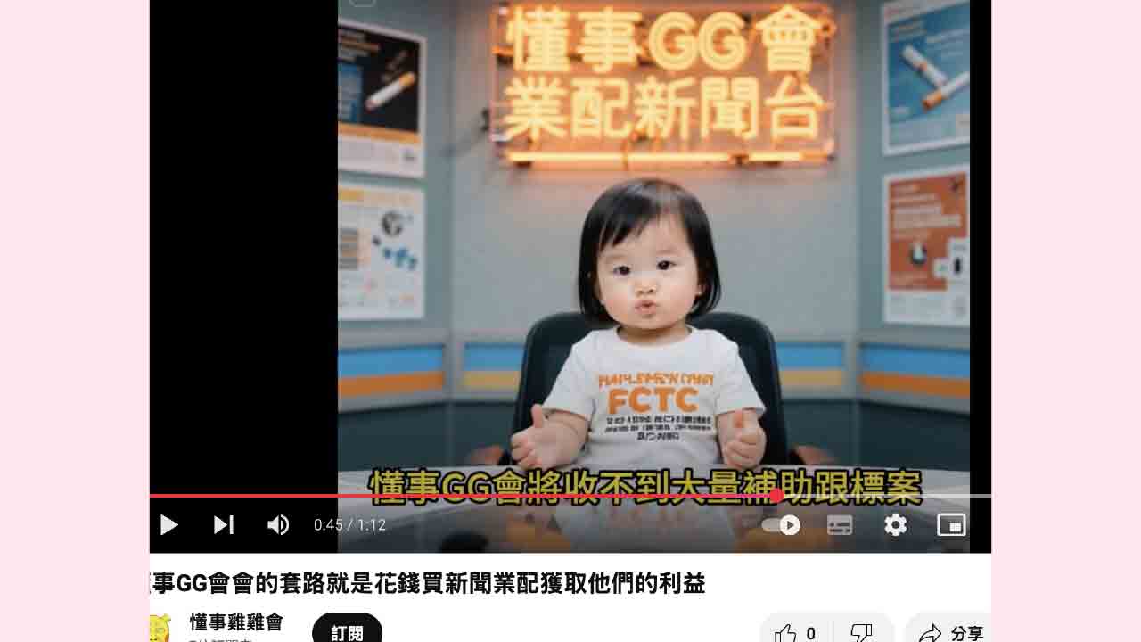 ↑圖說:「懂事雞雞會」在YouTube上傳動畫影片,內容指接受日本紙煙商補助的「懂事GG會」花錢買新聞業配,恐嚇政府絕不能開放加熱菸。(圖片來源:翻攝自「懂事雞雞會」YouTube頻道)