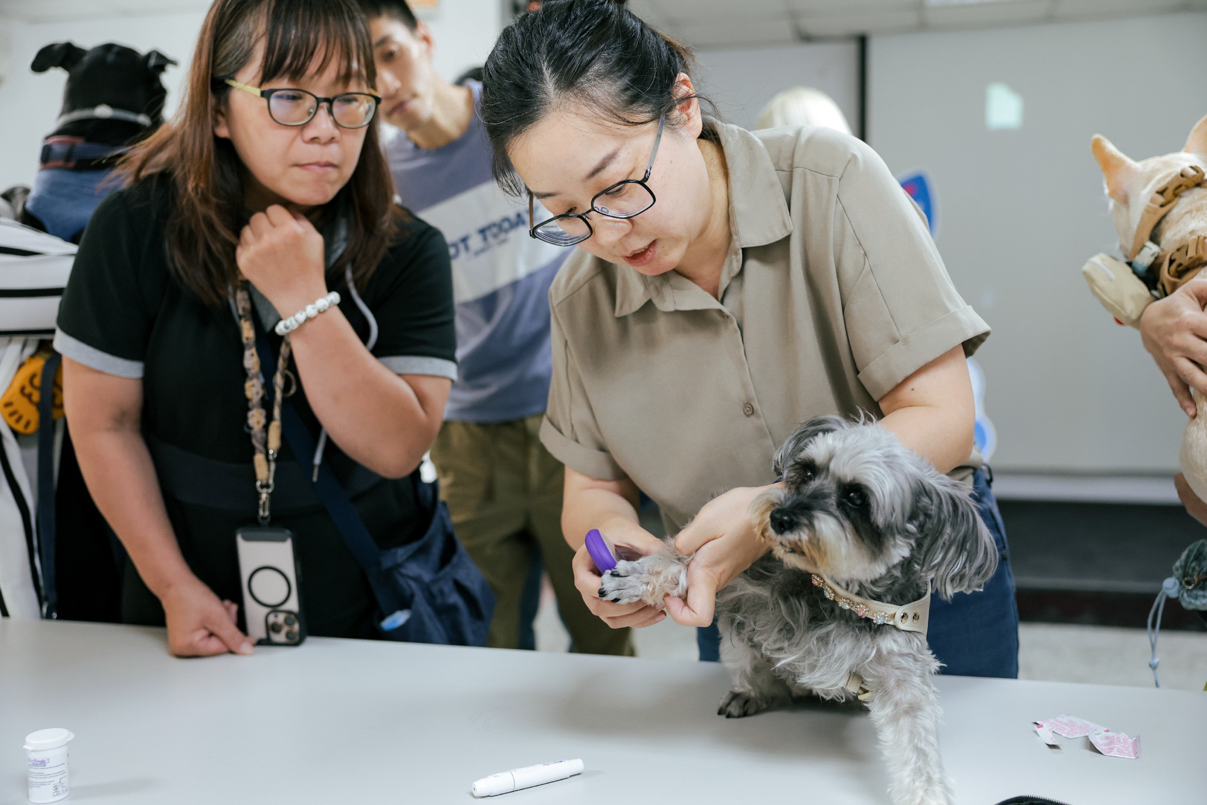 講座現場不僅說明糖尿病、高血脂與白內障等疾病的潛在風險,也涵蓋災害發生時的應變要點,如如何攜帶備用胰島素、保存血糖紀錄等應急流程,提升飼主在突發狀況下的照護應變力。現場實例中,12歲雪納瑞「酷妹」因血糖異常參加活動,讓飼主首次學會正確注射胰島素與飲食控制技巧,獲益良多。