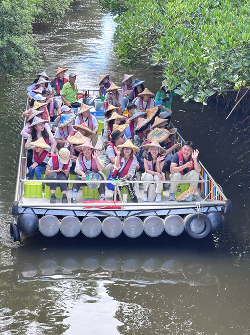 ↑圖說:踩線團搭乘竹筏深入四草綠色隧道,感受台江內海的濕地生態之美(圖片來源:臺南市觀旅局提供)