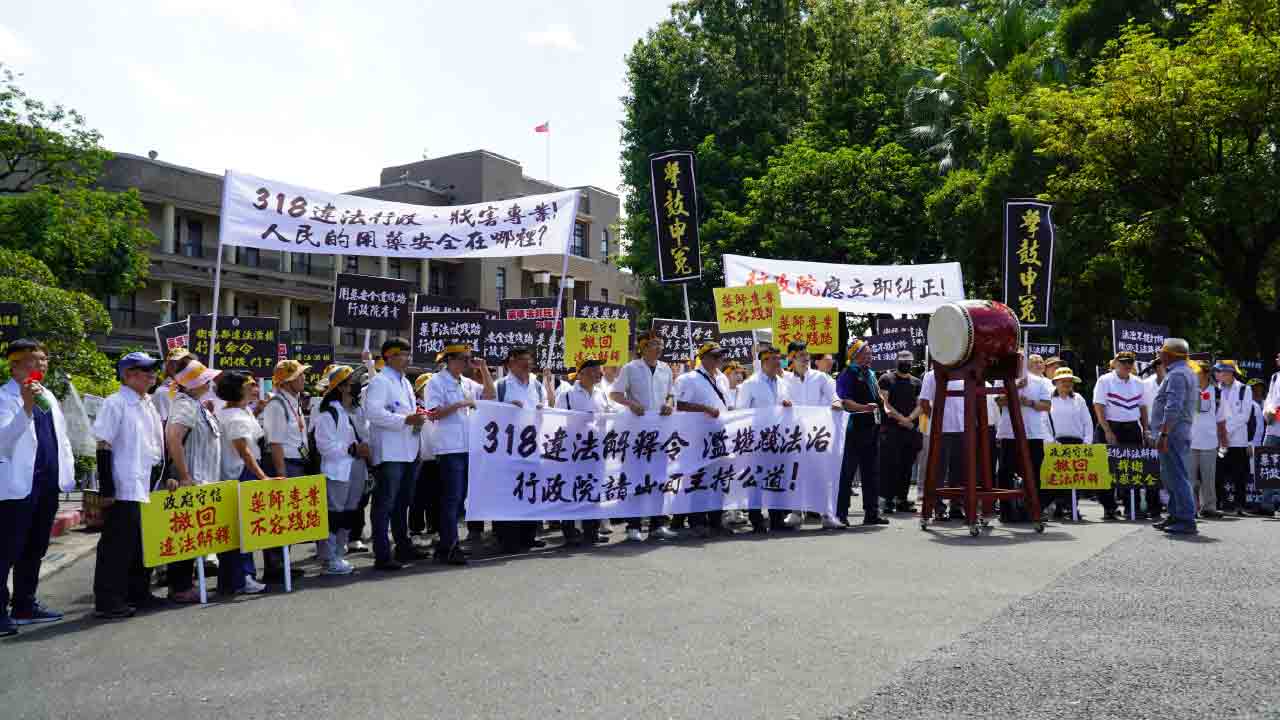 中華民國藥師公會全國聯合會今(4)日號召藥師及藥學生集結行政院,發起「擊鼓申冤」行動,強烈抗議衛福部違法解釋《藥事法》第103條第2項,讓無藥事背景者販售中藥,形同破壞法治與專業制度。黃金舜理事長在現場擊鼓三聲,象徵法治警鐘響起,並遞交陳情書,呼籲行政院召開跨部會協調會議,要求衛福部撤回違法解釋令。