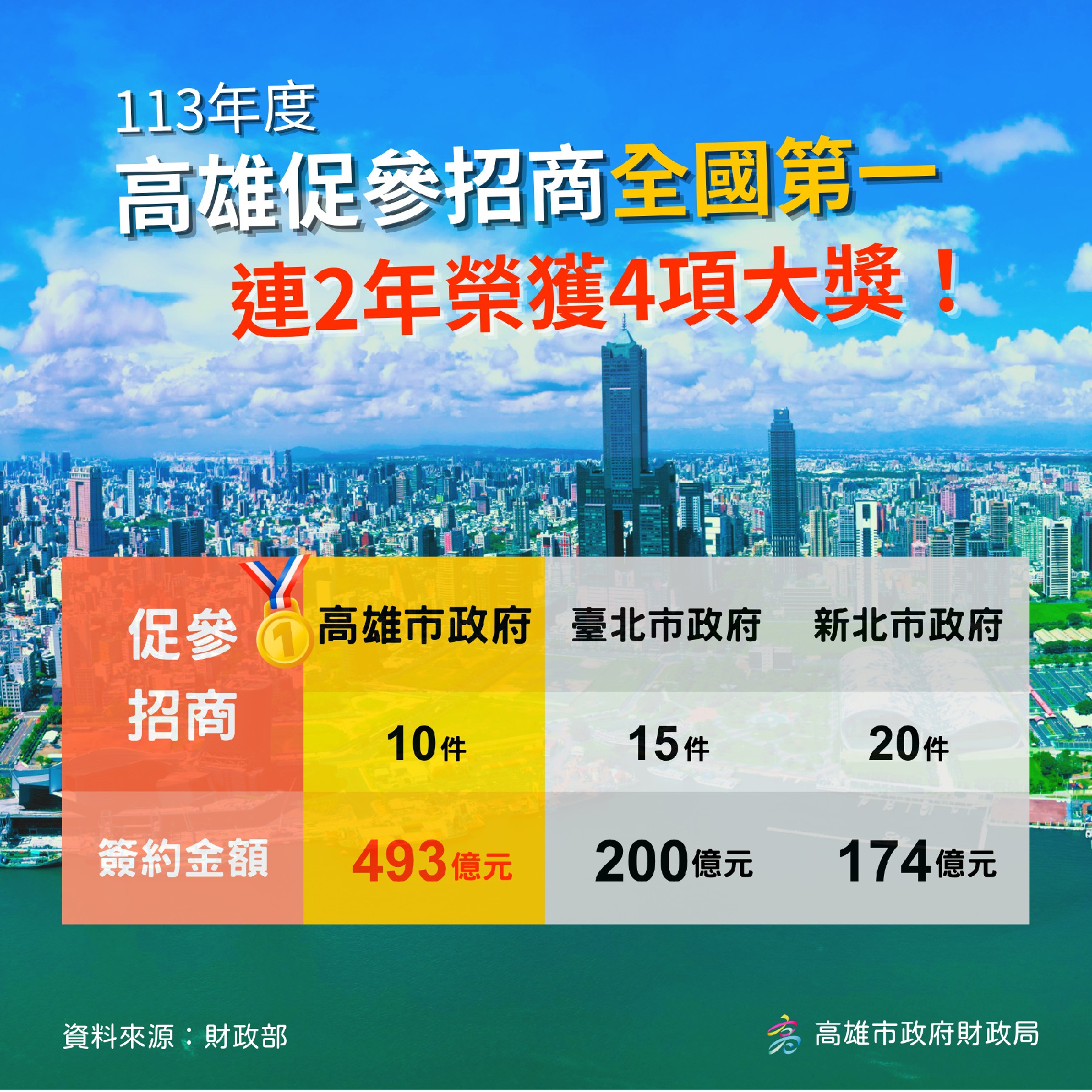 ↑圖說:113年度高雄市促參招商全國第一(圖片來源:高雄市財政局提供)
