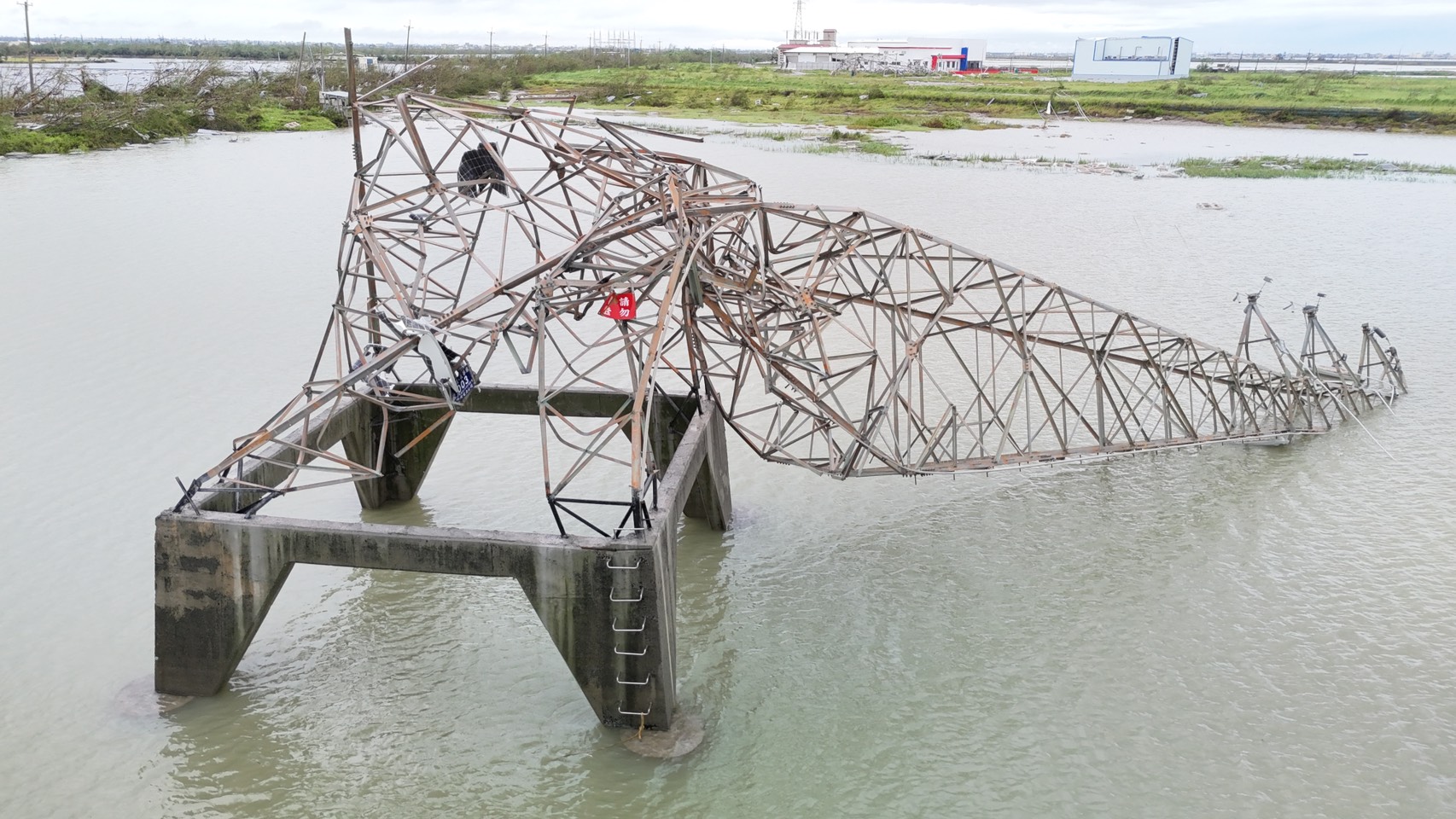 ▼圖說:嘉義布袋地區倒塌電塔。(圖/台電提供)