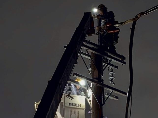 ▼圖說:台電人員於台南新營進行斷桿、斷線搶修。(圖/台電提供)