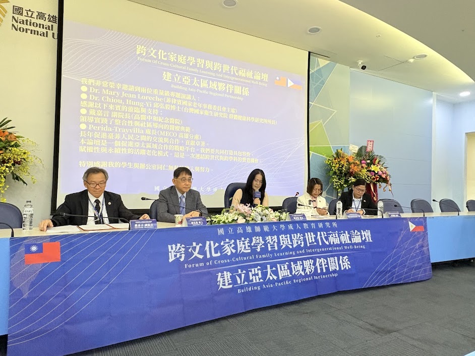 在全球加速高齡化與社會結構變遷下,國立高雄師範大學攜手菲律賓NCSC (菲律賓國家資深公民委員會),8日在和平校區國際會議廳舉辦「2025跨文化家庭學習與跨世代福祉論壇:建立亞太區域夥伴關係」,匯聚台灣及菲律賓教育、政策及醫療領域的重要領袖,共同探索未來高齡社會與家庭支持的新藍圖。