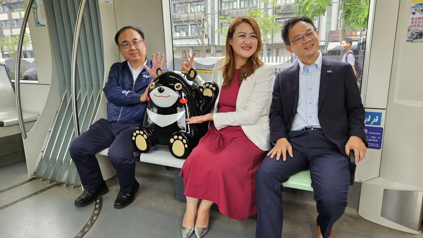 ↑圖說:車廂內還設置了「熊本熊x高雄熊」立體公仔座位,成為吸睛的拍照亮點。(圖片來源:記者 賴君欣 拍攝)