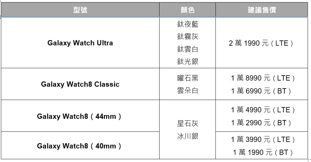 另外,三星也推出全新的Galaxy Watch8和Galaxy Watch8 Classic,以及新版的Galaxy Watch Ultra鈦夜藍色。