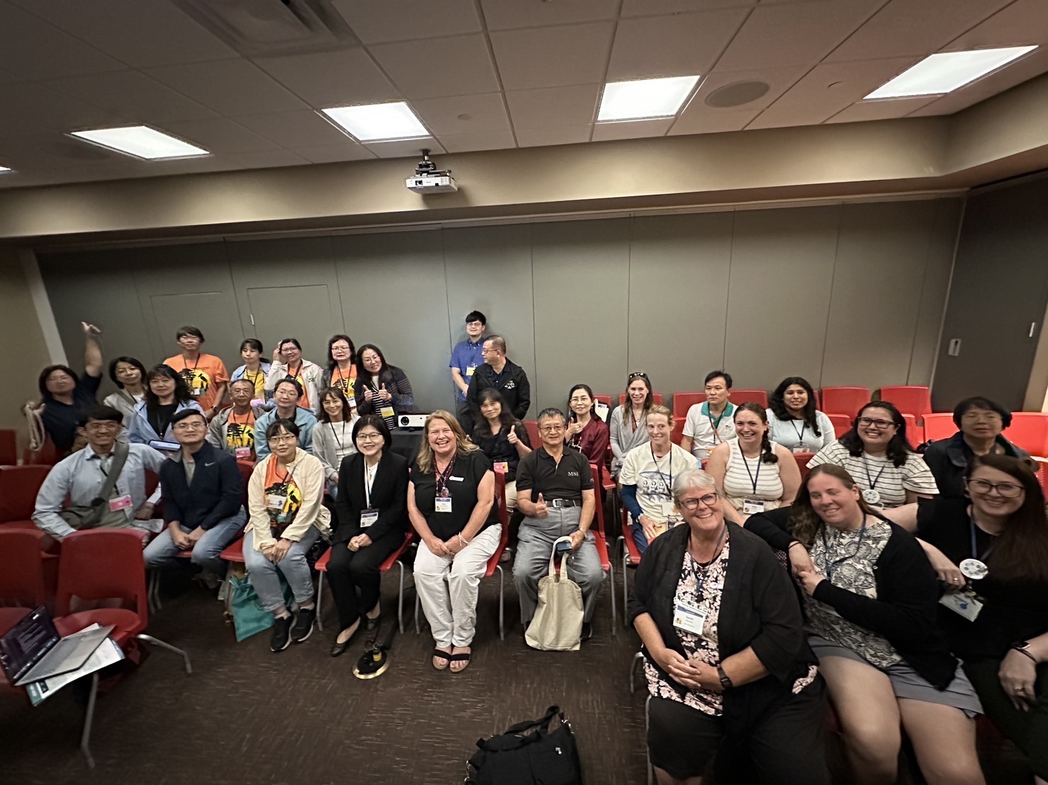 ↑圖說:海委會林麗英處長(第二排左4)以「2024年臺灣推動OSS海洋素養教育計畫」為題進行發表,會後與參加人員合影。 美國國家海洋教育者協會(NMEA)現任會長Tara Hicks Johnson(第二排左5)(圖片來源:海洋委員會提供)