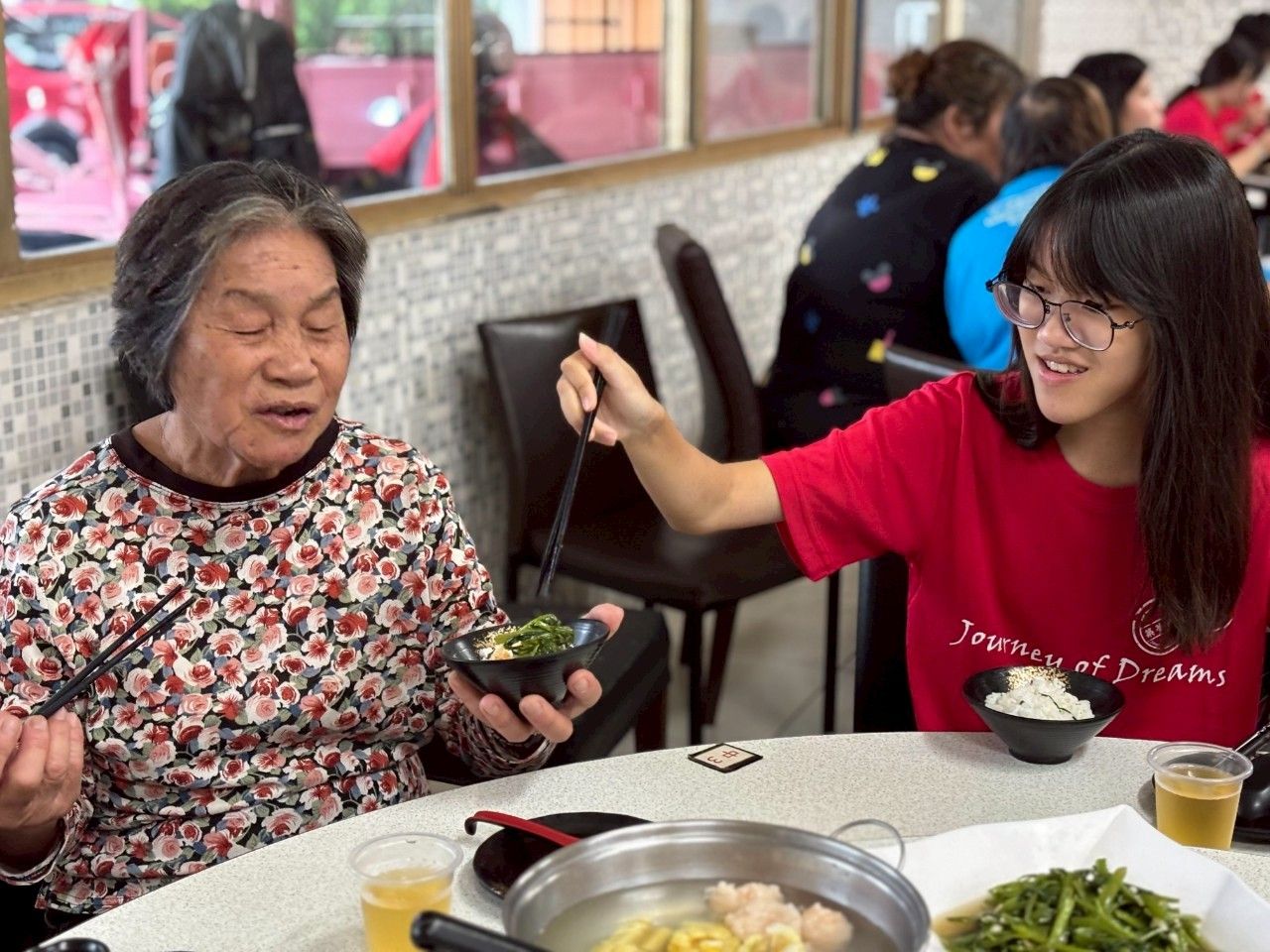 此次活動以「從田間到餐桌」為主軸,學生志工走入阿嬤們的菜園,認識當季作物與農耕智慧,並學習如何規劃適合銀髮族的「我的餐盤」。備妥食材與營養知識後,志工們親自下廚製作營養「四菜一湯」,邀請社區長輩共進午餐,在圍桌共食與話家常中,讓青銀共餐成為傳遞關懷的最佳橋樑。