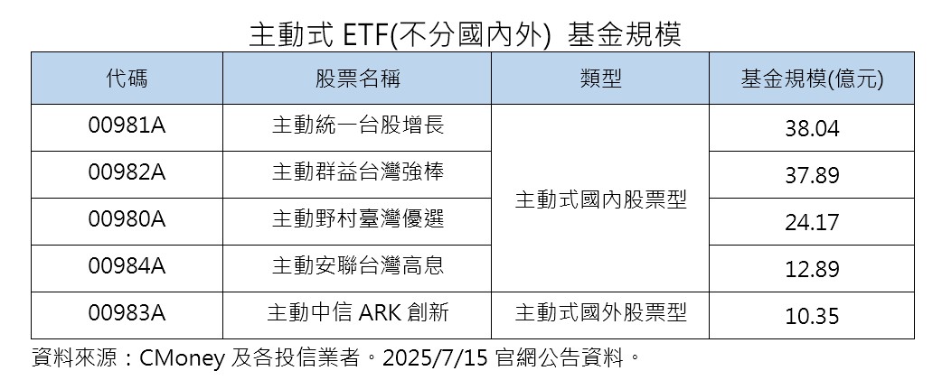 00981A昨日淨值來到11.42元,基金規模單日增逾1.68億元,突破38億,淨值與規模均改寫歷史新高,躍居主動式ETF「規模王」,也帶動整體主動式ETF基金總規模攀升至123.34億元。