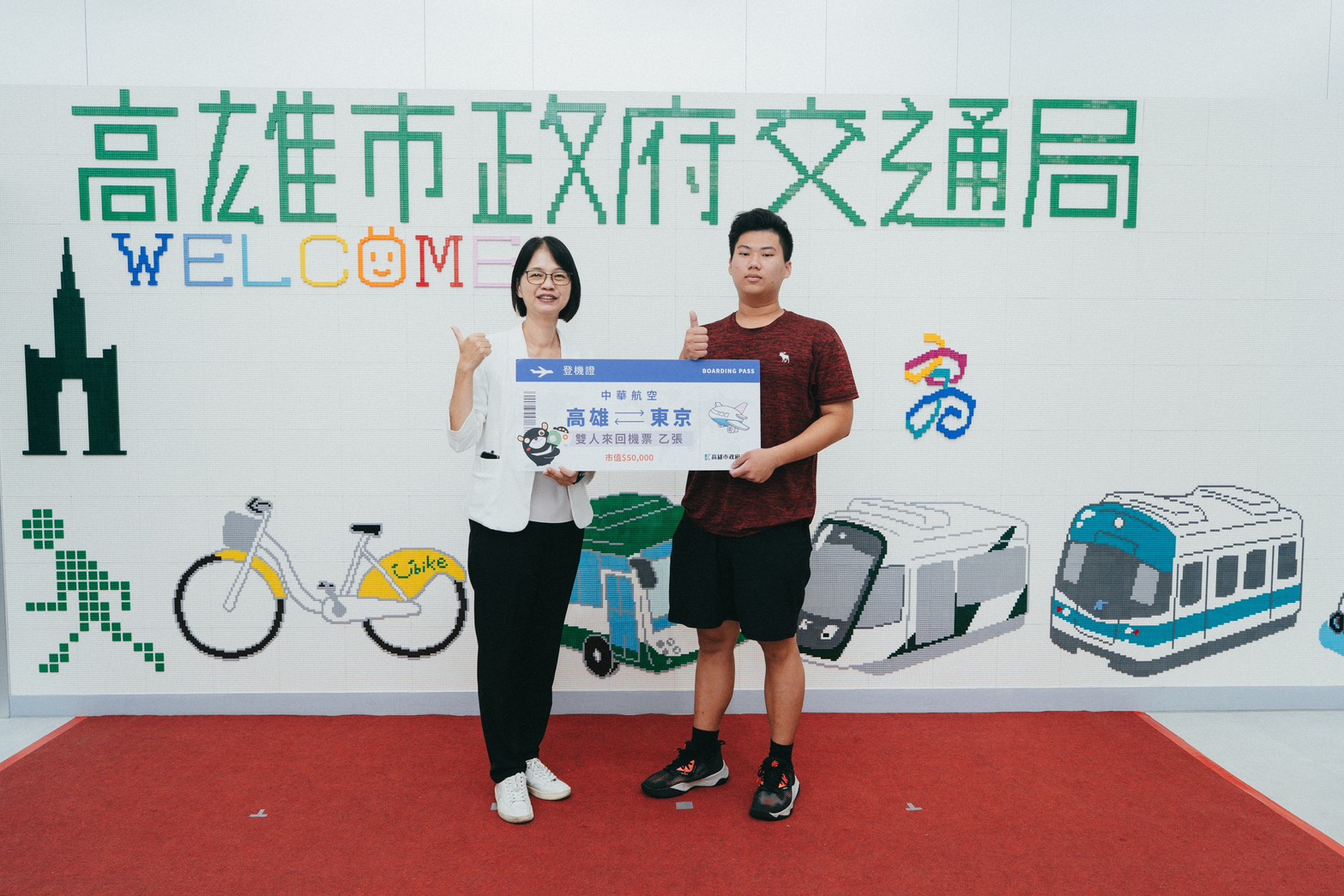 ↑圖說:最大獎高雄-東京雙人來回機票由來自小港的高中學生獲得。(圖片來源:高雄市交通局提供)