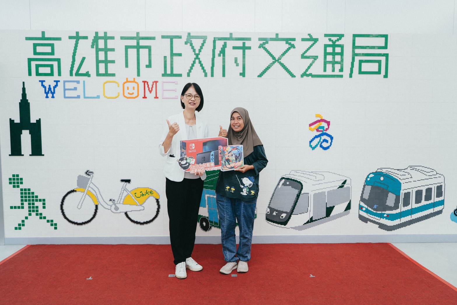 第二獎「Switch紅藍機遊戲組合」則由一位來自印尼的外籍朋友獲得。長期依賴捷運與公車通勤的她,TPASS已成為生活中不可或缺的通勤工具。她感謝高雄市政府讓包含外籍居民在內的各族群都能輕鬆使用TPASS,讓她即使沒有汽機車,也能便利通行大高雄地區。