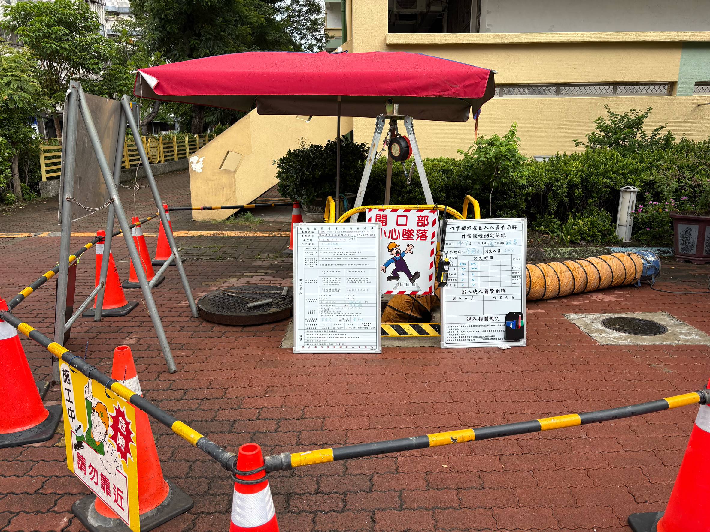 ↑圖說:工作井周圍防墜及通風設備擺設(圖片來源:高雄市水利局提供)