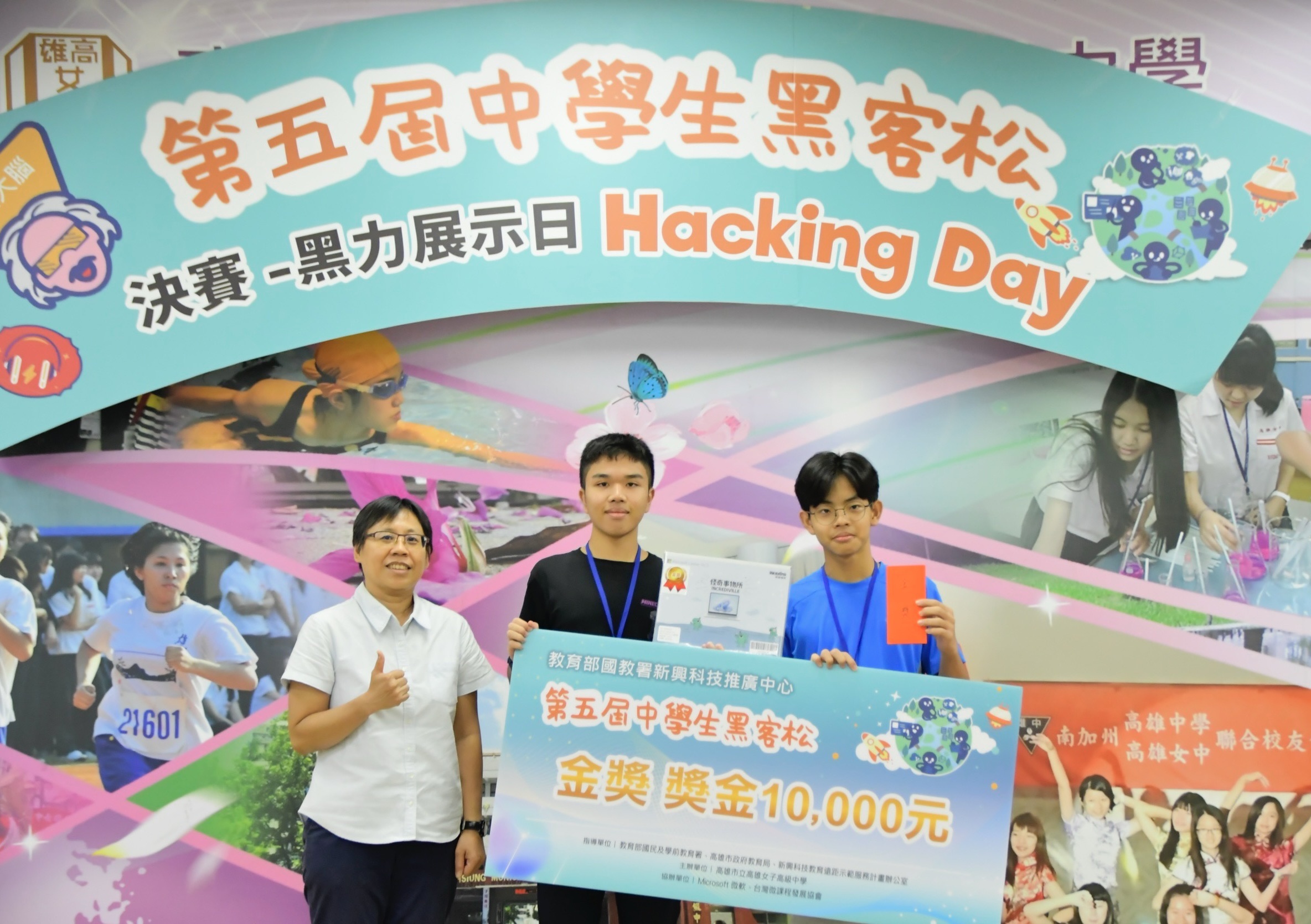 中學生黑客松競賽由擔任新興科技人工智慧教育推廣中心的高雄女中承辦,競賽今年邁入第五屆,經過北中南海選、第一、二階段黑客挑戰日(創意發想、企劃諮詢)、複選與第三階段黑客挑戰日(雛型試作),也首次辦理兩天一夜Special Issue子賽事。本屆賽事也是臺灣首次中學生跨夜的黑客松競賽活動,將從優勝隊伍擇優推參與年底於高雄市辦理的亞太資通訊科技聯盟大賽(Asia Pacific ICT Alliance Awards, APICTA Awards)高中組與國中小組國家代表隊候選隊伍。