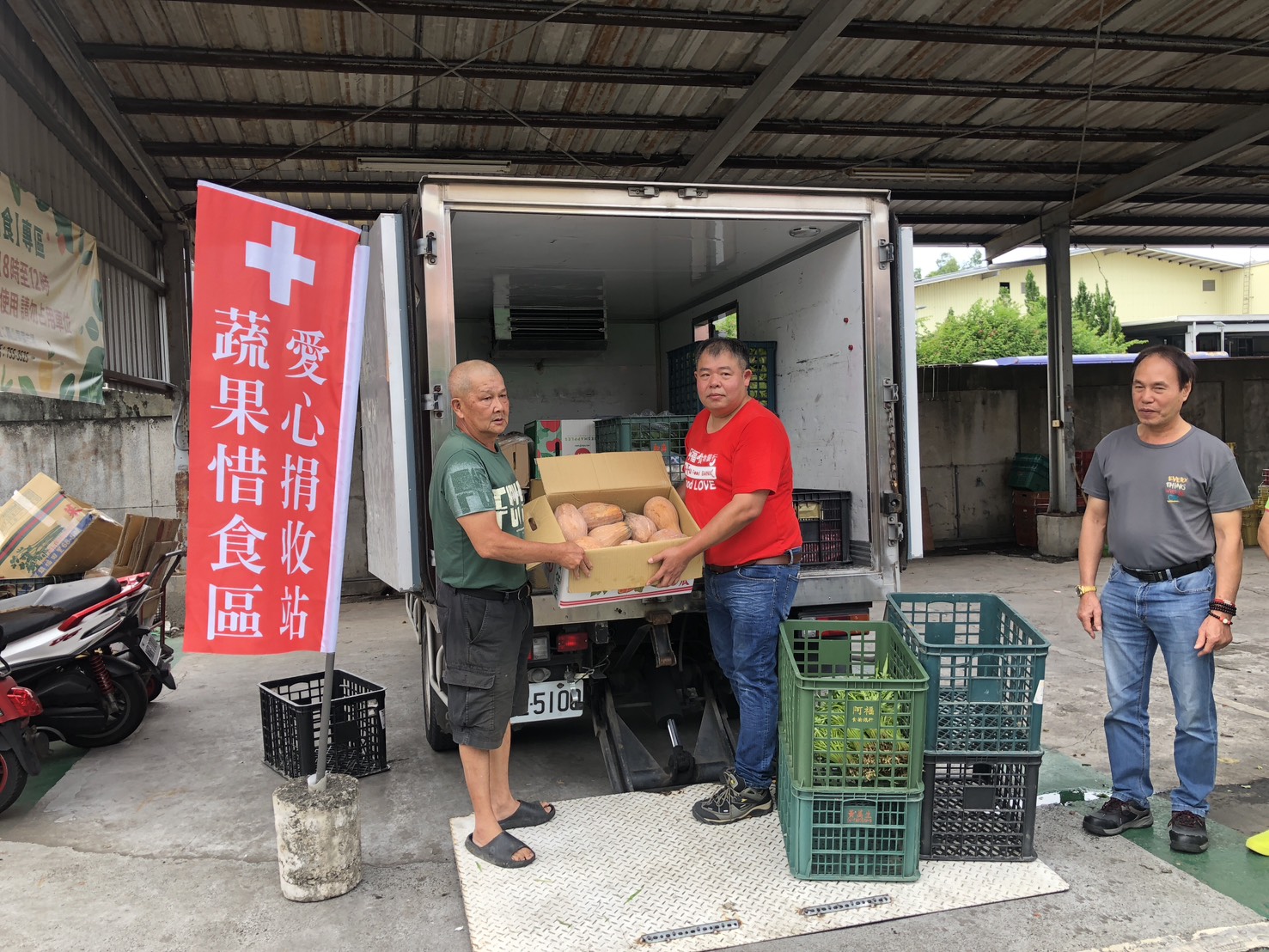 ↑圖說:鳳山果菜市場攤商載運蔬果至蔬果惜食專區捐贈。(圖片來源:高雄市農業局提供)
