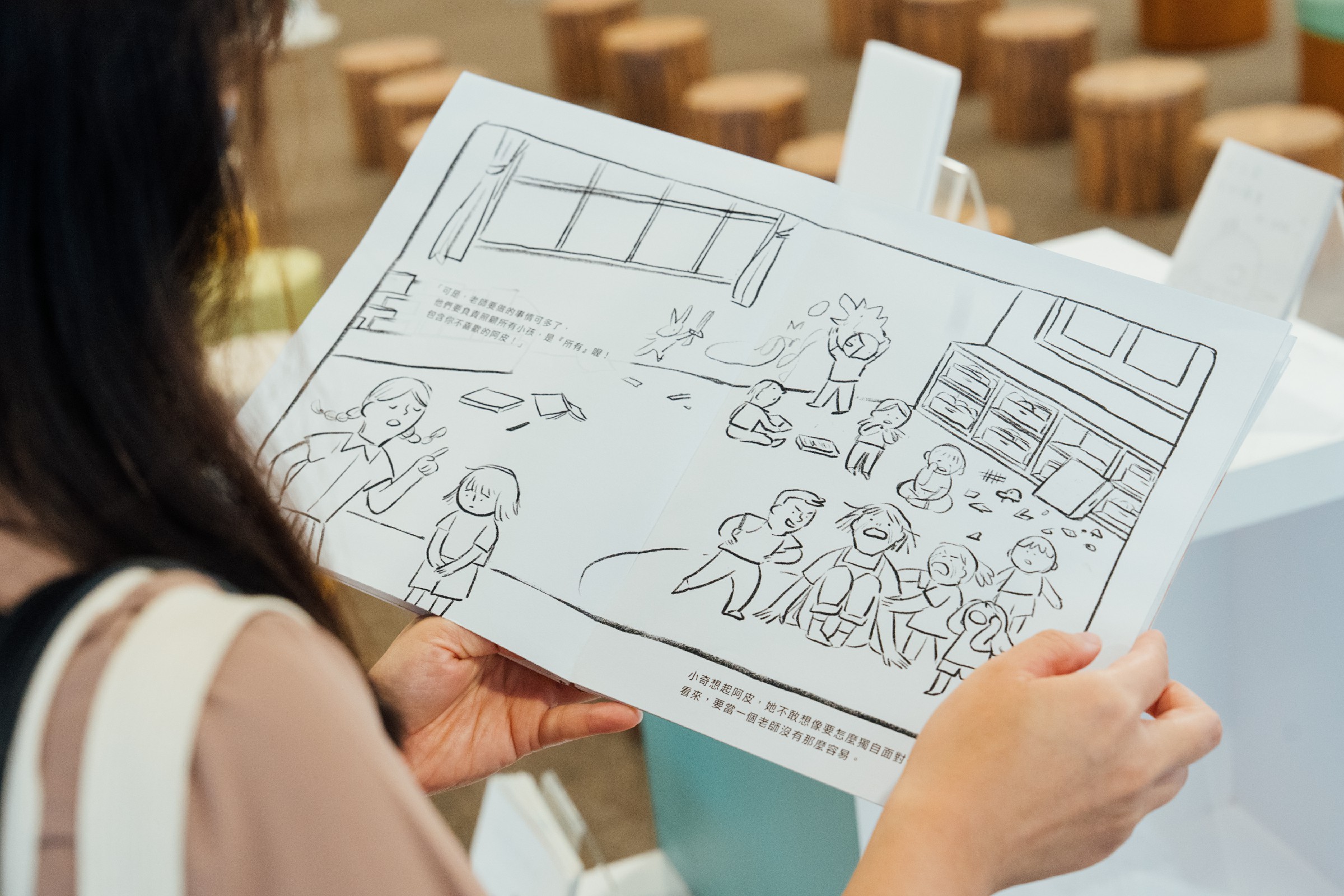 對學員而言,這段創作歷程也滿載收穫。學員吳東益提到,課堂上彼此的交流與建議,是他創作過程中的重要支持,「有同儕的陪伴,讓人更願意突破自己。」另一位學員吳韶寶則分享,課程讓她首次深入思考圖文之間的節奏與空間配置,「那是一種很微妙的敘事力,讓圖畫不只是畫面,而是能引導閱讀的語言。」