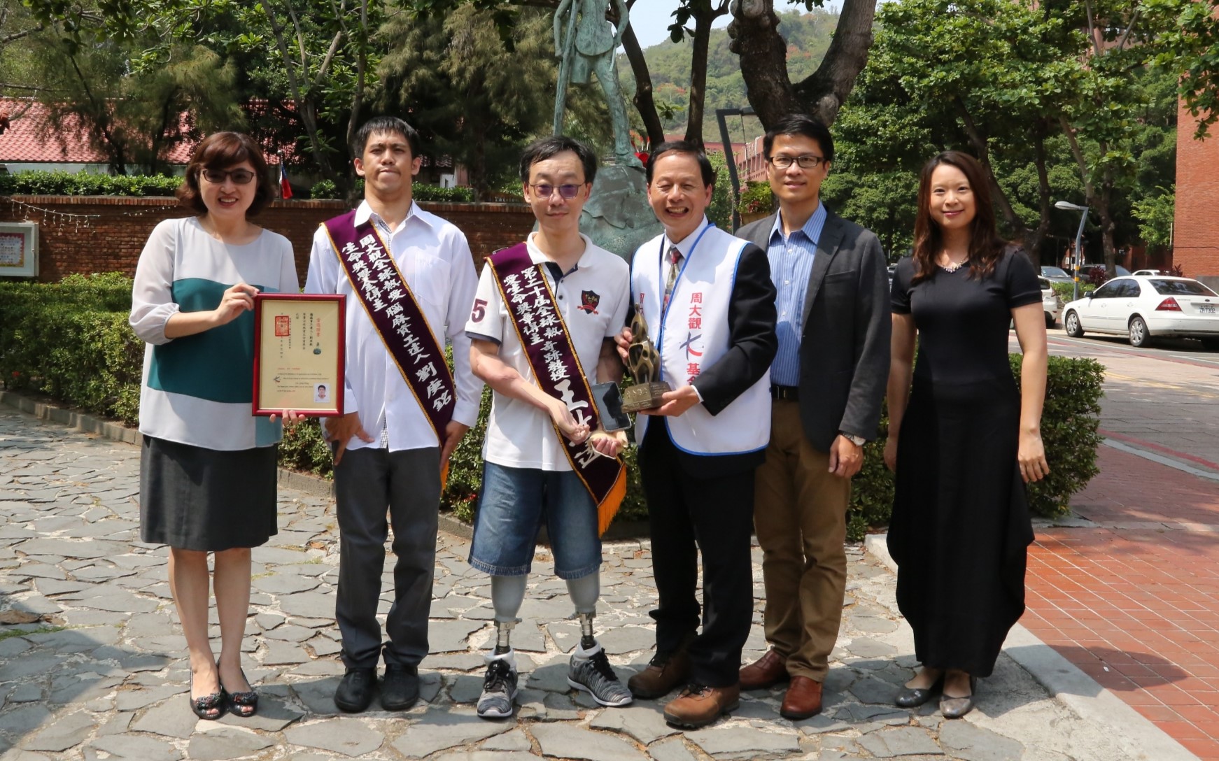 圖說:王致遠(左三)曾獲頒周大觀熱愛生命獎。 (圖片來源:中山大學提供)