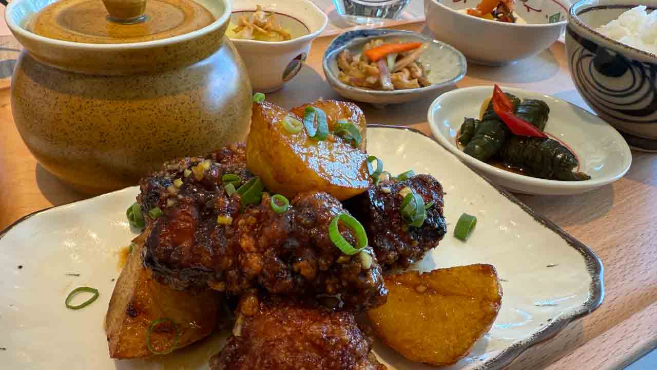Two Tails Hotel董事長馮傑指出,餐廳之所以取名為攤味,是以「一家一攤,貪這一味」做為品牌主軸。他特別與主廚走訪福建與廈門取經,希望抓到閩菜的精神,結合漳泉古法與台灣庶民風味,呈現出福州撈化米粉、泉州爌肉壺仔飯、浮水羹與客家肚紗捲、福州糟香醉排骨(如下圖,記者李錦奇攝影)等經典美食。