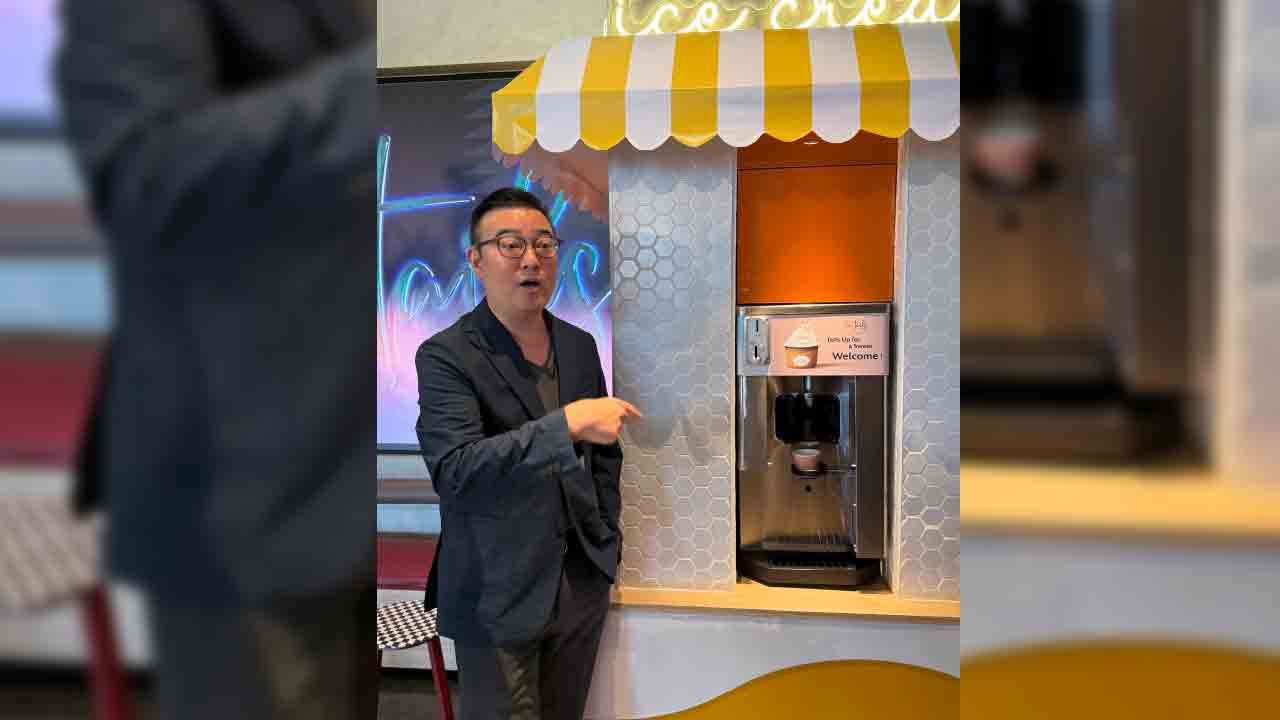 「我希望把特色作出來,還有好服務,讓飯店成為一座城市可以放鬆的地方,有美食跟有趣的房間!」馮傑舉例說,房客每天都可以免費吃到冰淇淋,而且是以投幣方式,機器自動製成,入住時,會依照住房人數提供代幣,房客自由到大廳冰淇淋機投幣取用。(如下圖,記者李錦奇攝影)