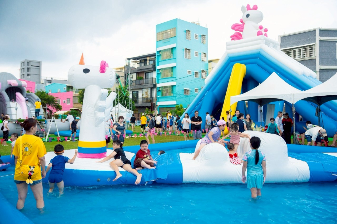 圖說:氣墊水樂園戲水設施超受小朋友歡迎。(圖片來源:高雄市觀光局提供)