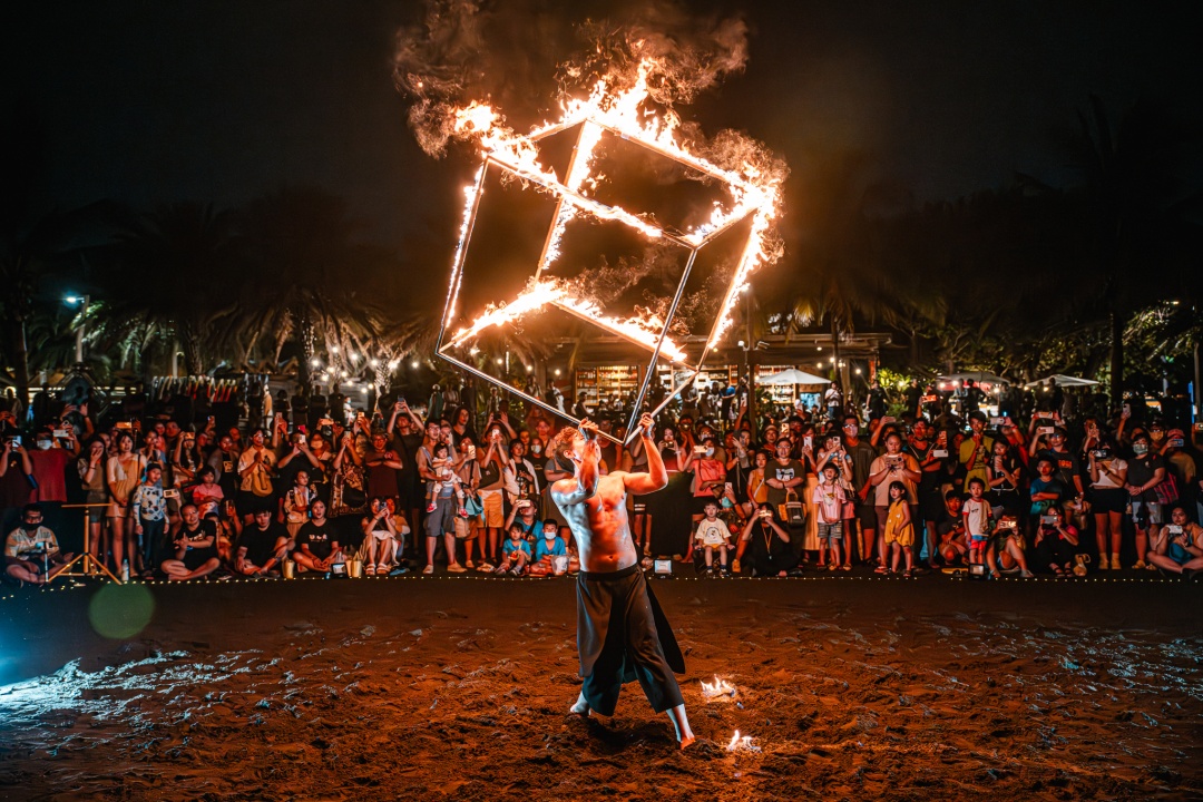 圖說:旗津風箏節期間每週日都加碼精彩火舞表演。(圖片來源:高雄市觀光局提供)
