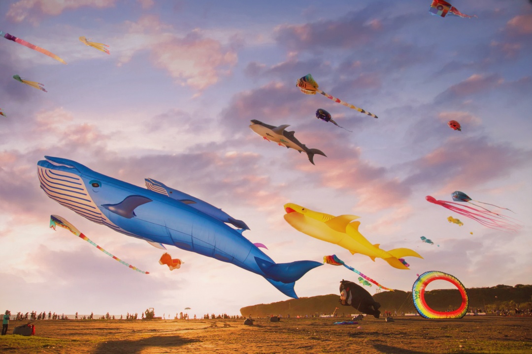 圖說:今年旗津風箏節集結鯨魚鎮等多元海洋生物及各式主題風箏。(圖片來源:高雄市觀光局提供)