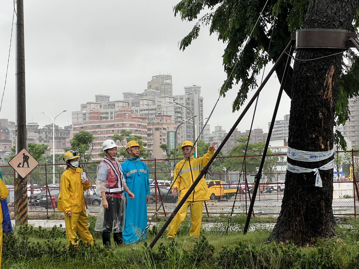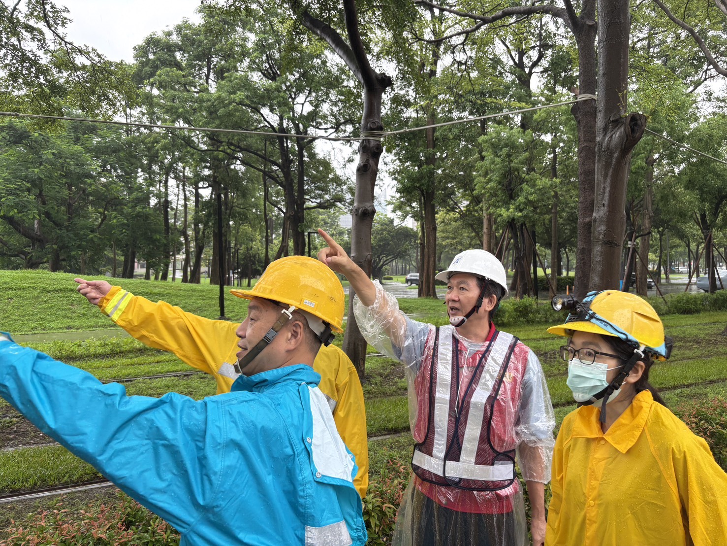特別受到關注的輕軌大順路段雨豆樹群,以及美術館沿線的小葉欖仁綠廊區,也經過重點巡檢。結果顯示,各大型喬木未出現傾倒、斷裂或根系鬆動等異常,排水順暢,顯示過去所實施的護根與排水工程已發揮實質成效。