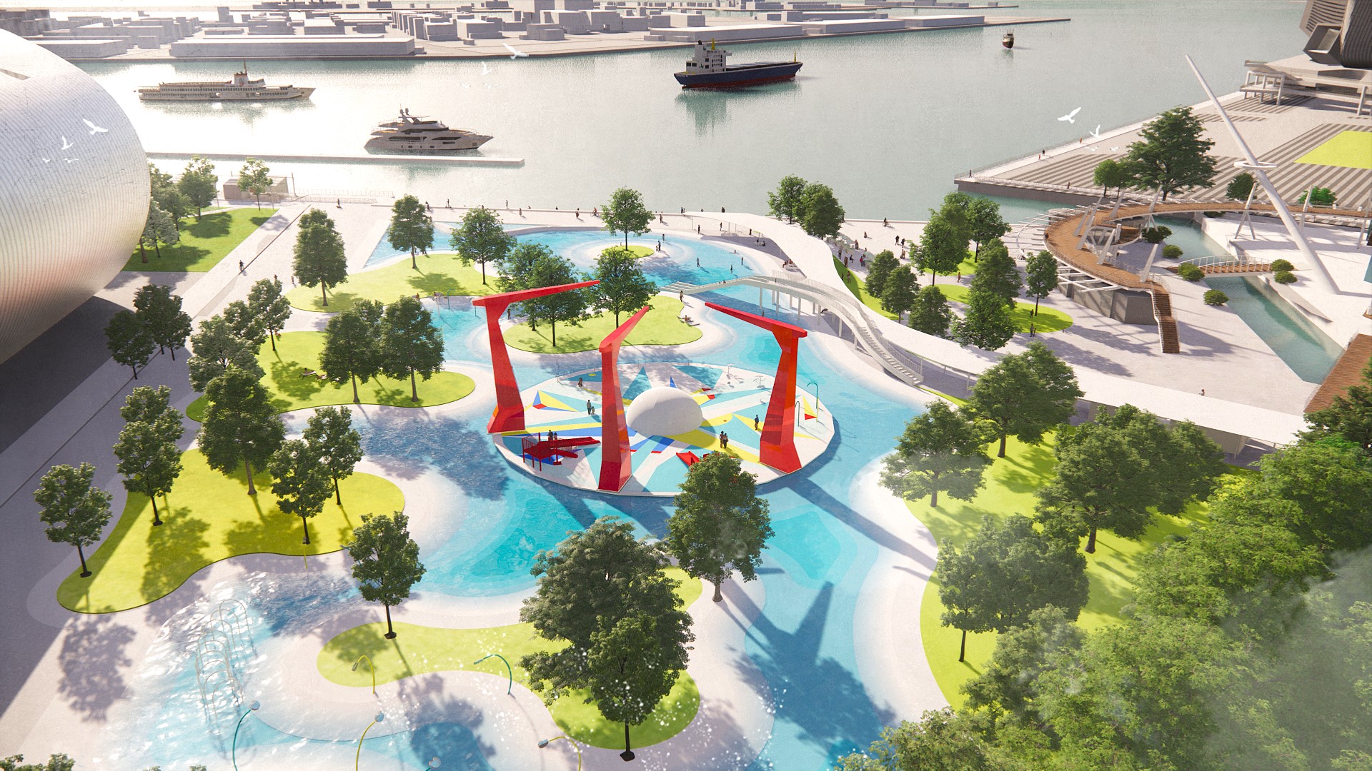 ↑圖說:亞灣濱海景觀綠帶串聯及再造計畫獲得金質獎肯定。(圖片來源:模擬圖/高雄市工務局提供)