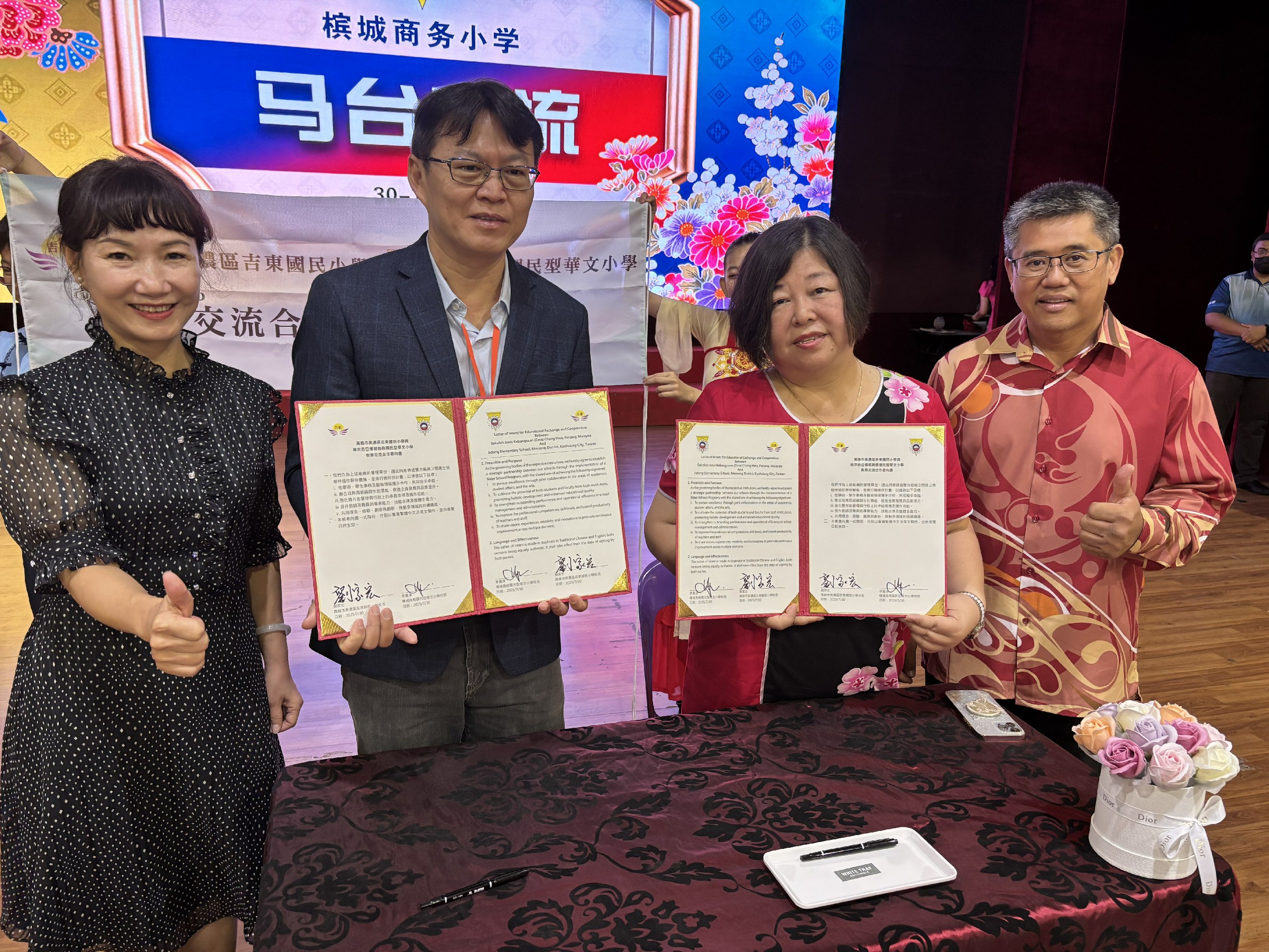 本次五天的交流行程由高雄市客家事務委員會主辦,合唱團小朋友除了今日與商務華小的表演互動,還將拜會檳城客家公會與霹靂嘉應會館。值得一提的是,美濃吉東國小校長劉家宏與商務華小簽署教育交流合作意向書(MOU),而高市客委會主委楊瑞霞也代表市府與客家公會簽署友好交流合作備忘錄,為未來兩市締結姊妹市關係奠定穩固基礎。