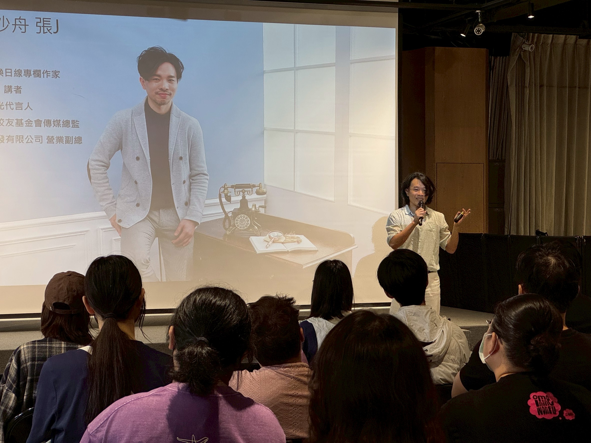 ↑圖說:作家張人杰分享自身從工程師轉職為創作者的歷程,鼓勵青年勇於探索多元職涯路徑,並以文字作為理解世界與自我表達的媒介工具。(圖片來源:高雄市青年局提供)