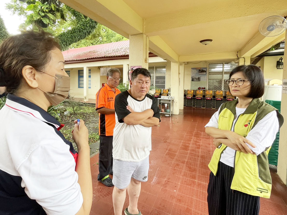↑圖說:社會局副局長葉欣雅前往同學農場探視安置民眾。(圖片來源:高雄市社會局提供)