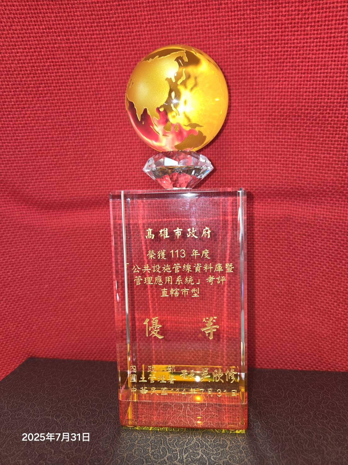↑圖說:高雄市再次榮獲「113年度公共設施管線資料庫管理供應系統」考評優等獎項(圖片來源:高雄市工務局提供)