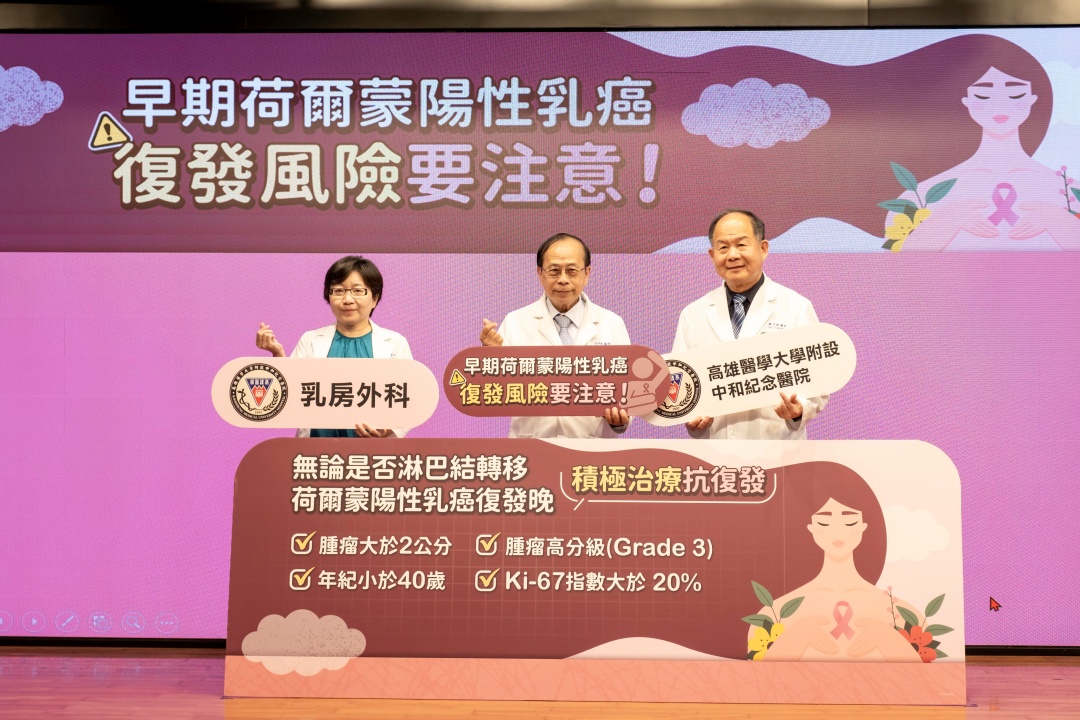 陳芳銘強調,相關研究在在顯示,早期荷爾蒙陽性乳癌患者無論是否出現淋巴結轉移,只要呈現某些指標就屬於高復發風險族群,包括腫瘤直徑超過2公分、年齡低於40歲、細胞分裂指數達20%以上。這類病友即使病情穩定,也應定期回診、依醫囑適度增加治療藥物,嚴密防堵復發風險。