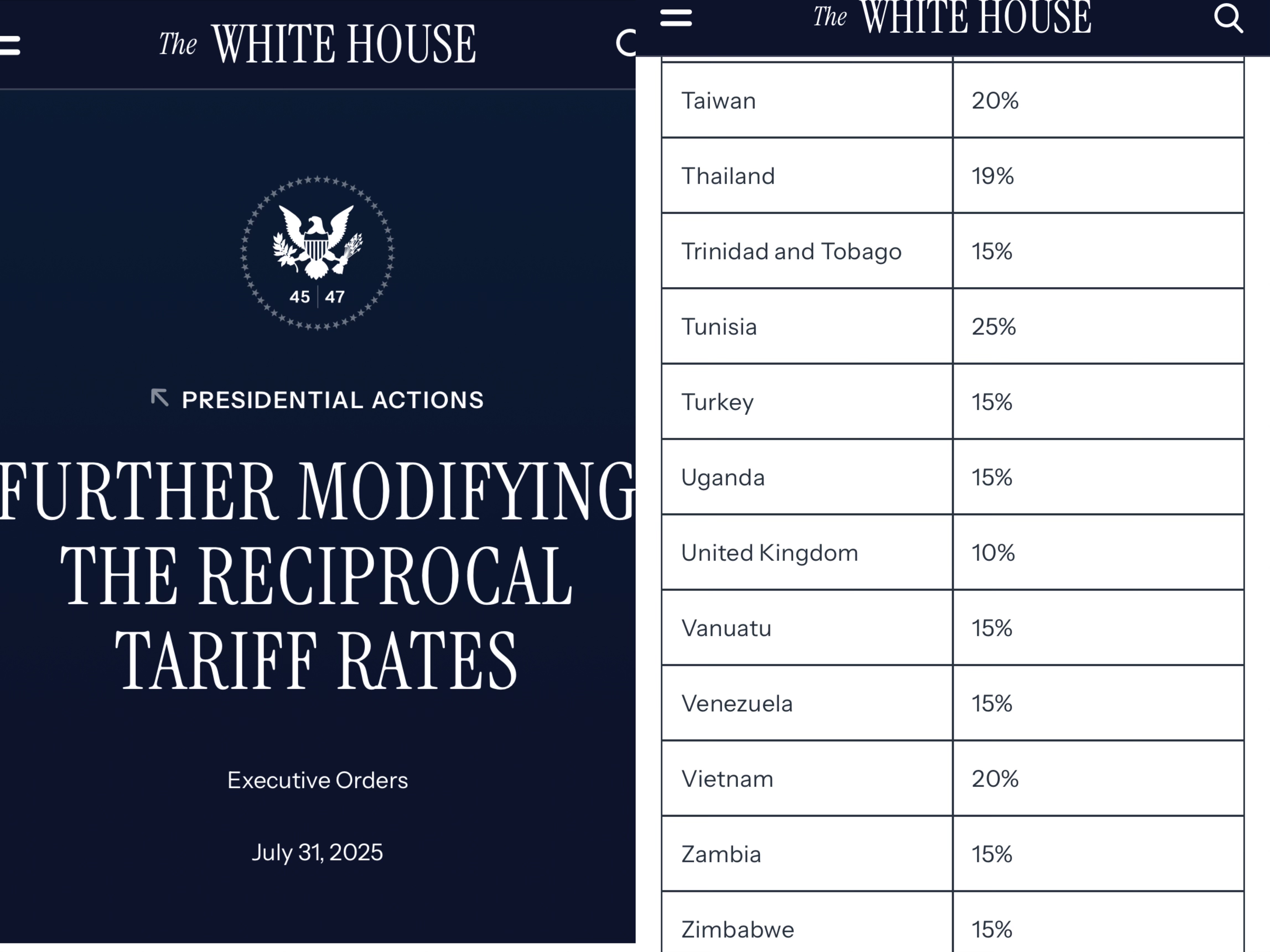 賴清德總統在臉書指出,台灣的「暫時性關稅」為20%,主要原因是,因為談判的程序安排,台美雙方還未完成總結會議,因此,美方先對台灣公布20%的「暫時性稅率」,只要後續達成協議,可望再調降稅率。而台美雙方後續也將就供應鏈合作及232條款相關議題一併磋商。