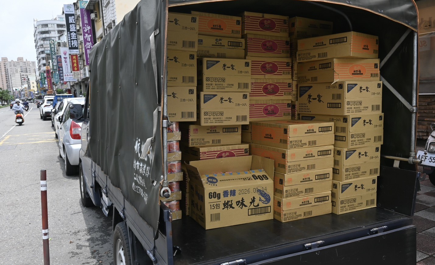 圖說:滿滿一車物資準備運往高雄原鄉。(圖片來源:許智傑辦公室提供)