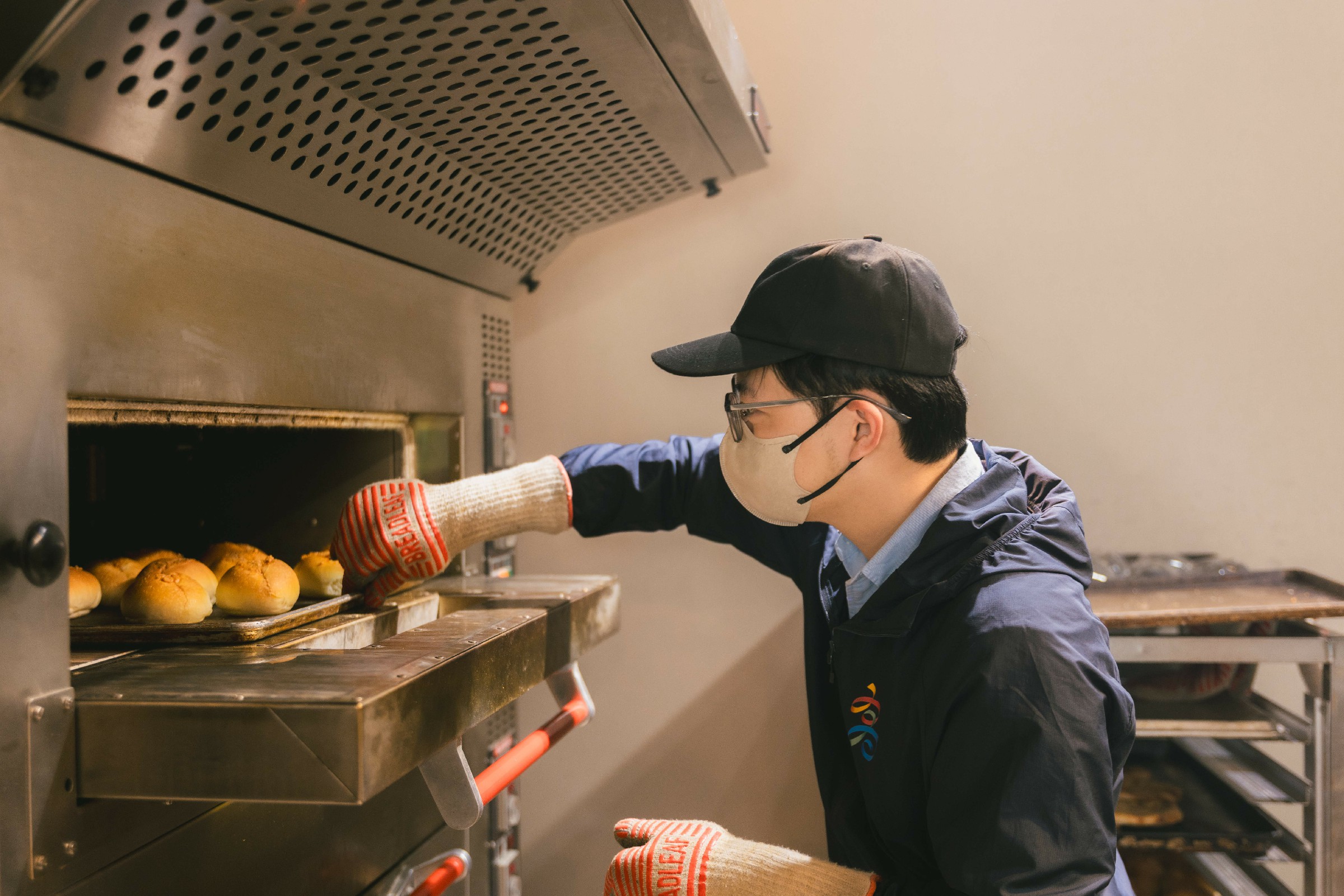 ↑圖說:青年局長林楷軒在烘焙師的引導下,體驗麵包製作的繁瑣工序。(圖片來源:高雄市青年局提供)