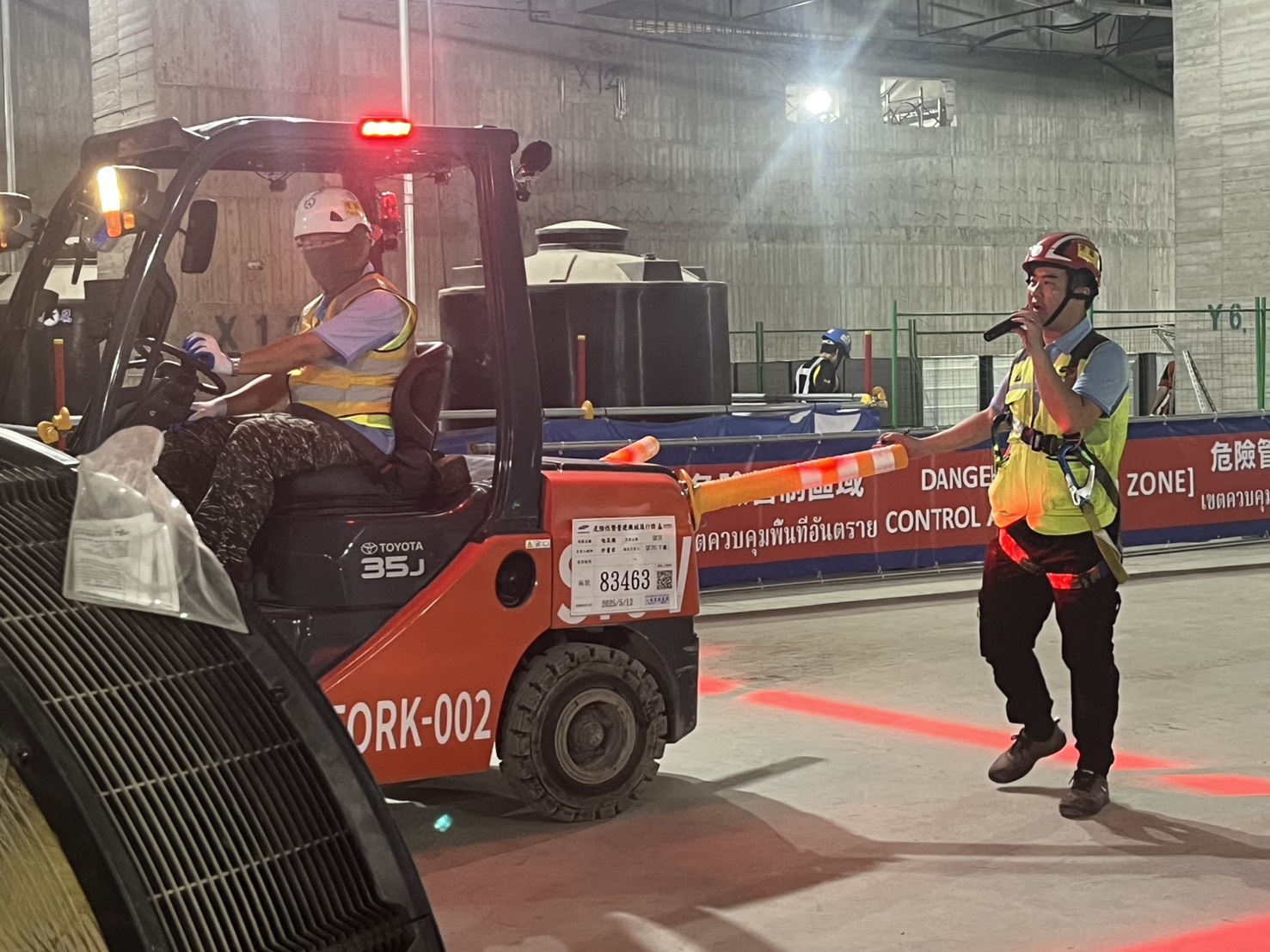 在現場最受矚目的,還包括工地自建的熱危害防護制度:配備專責巡查員、醫護室及兩位職業護理師,主動巡視勞工狀況、即時應對熱相關症狀,展現業者對勞工健康的積極作為。