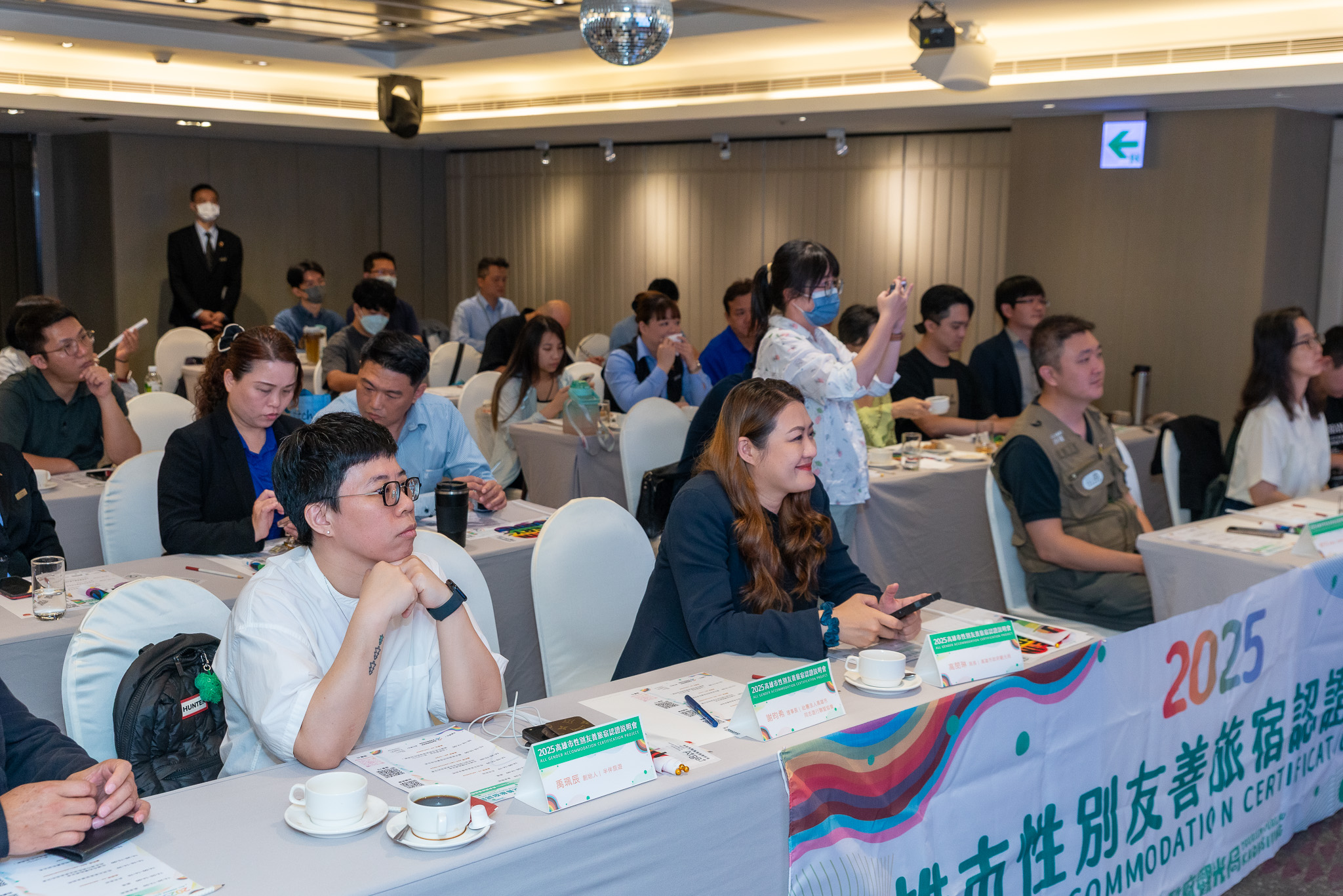 為協助旅宿業者落實理念,高市觀光局上半年已舉辦兩場性別友善旅宿教育訓練,邀請性別平權與旅遊產業專家跨域分享實務經驗。課程涵蓋同志社群旅遊實況、LGBTQ+在空間中遭遇的性別規範,以及性別友善在觀光行銷中的應用策略,廣受與會業者肯定。透過持續教育與對話,協助業者內化共融價值,進而落實於空間設計與日常服務中。