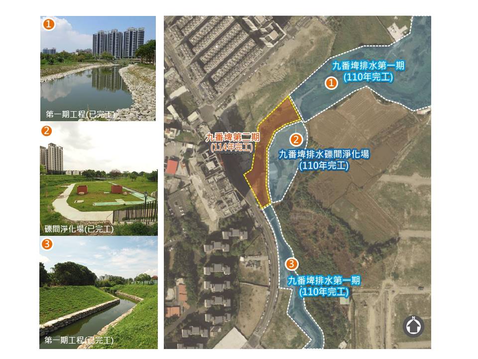 高市水利局所主導的仁武區九番埤排水水岸環境營造計畫第二期改善工程,已於今年6月30日完工,不僅延續第一期成果,串聯起完整的水岸綠帶,更成功轉化為兼具生態保育、水質淨化與居民休憩功能的多元公共空間。